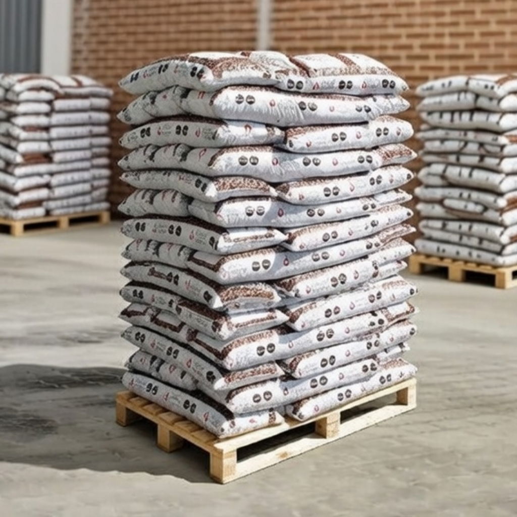 Du får 896 kg pr palle - pakket i 16kg's poser, så de er nemme at håndtere.