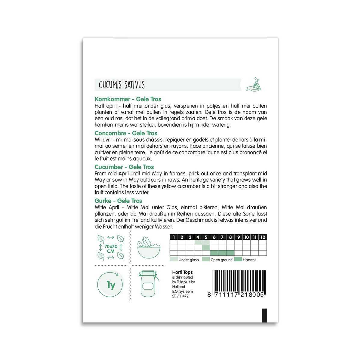 Agurken Gele Tros har en gul farve i stedet for den klassiske grønne farve, hvilket gør agurken sjov og interessant. Sorten minder om den klassiske agurk i smagen, dog indeholder den mindre vand, der gør den mere kraftig i smagen.