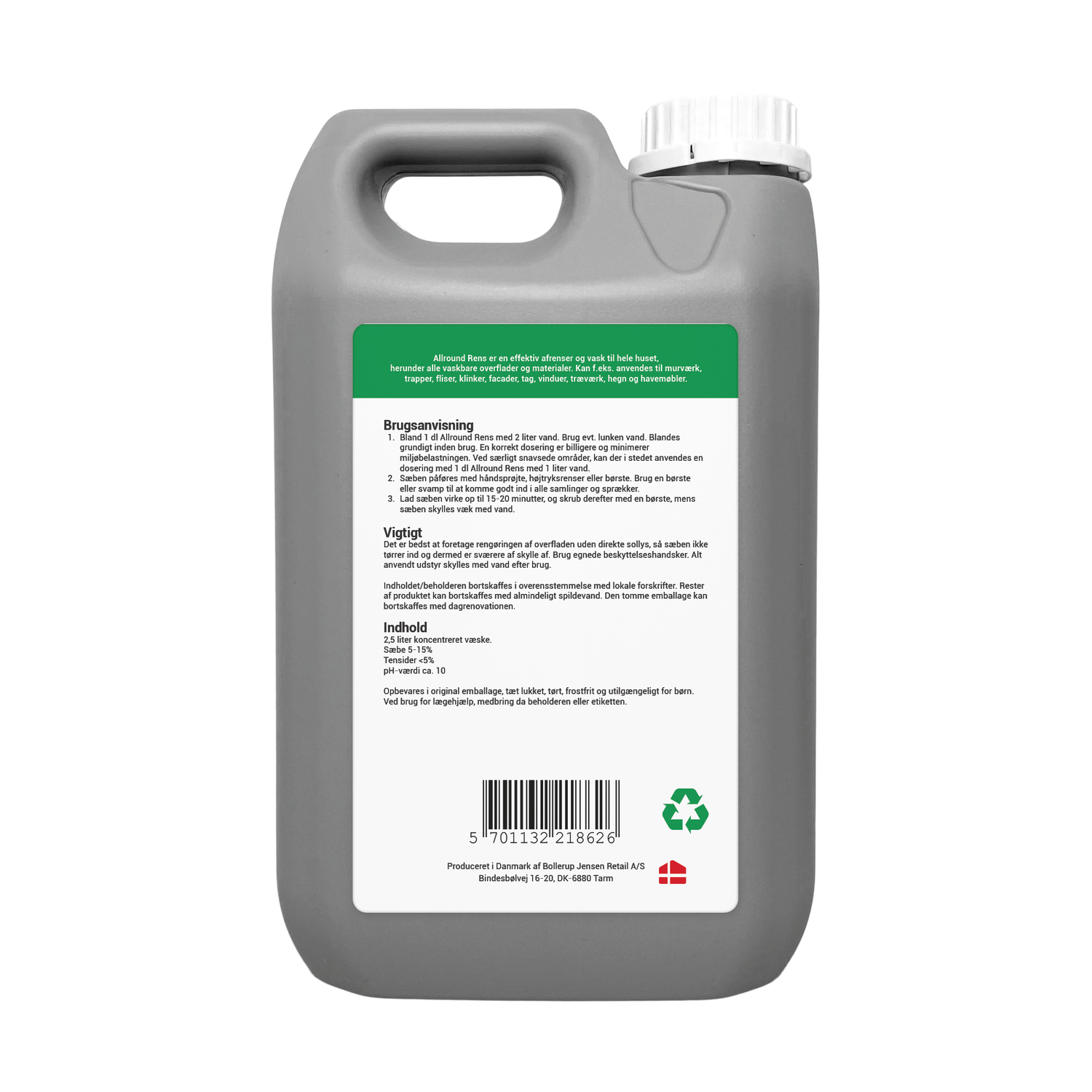 Med den miljøvenlige Allround Rens fra Bollerup Jensen, kan du effektivt rense en hel række vaskbare overflader og materialer.