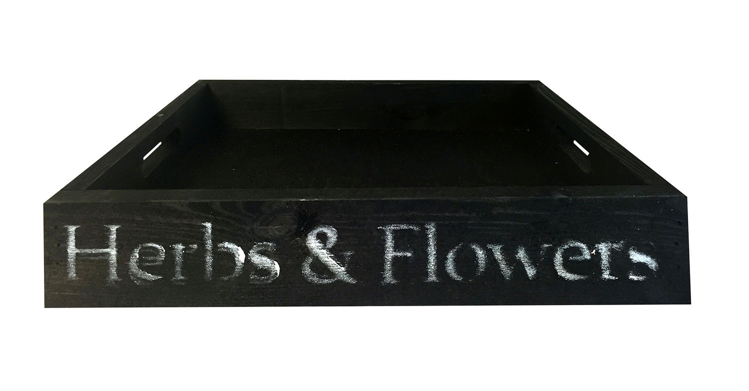 Bakken har praktiske håndtag, og på siden er trykt "Herbs & Flowers"