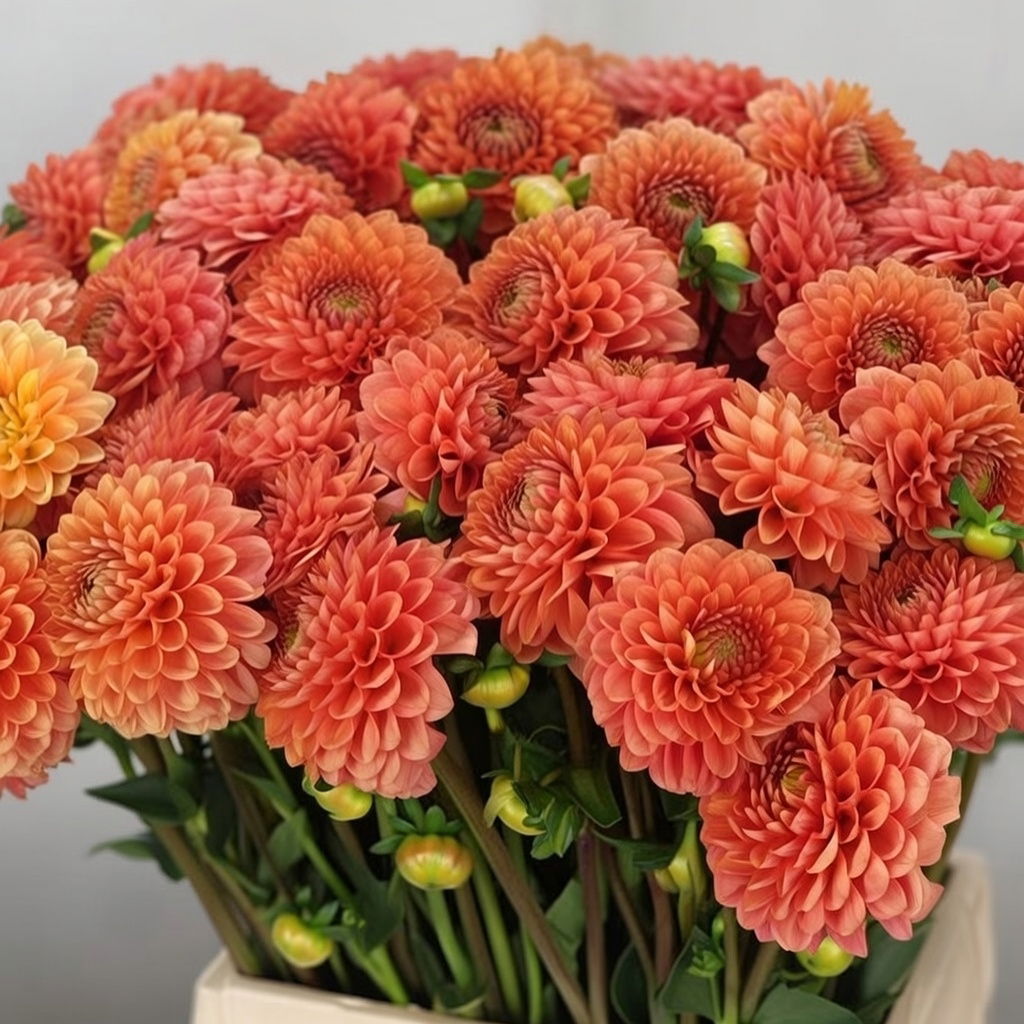 Dahlia Sylvia er en smuk blomst med runde, orange blomster på lange stængler, der spreder varme farver i haven. Den blomstrer fra sensommeren til de første frostnætter og holder haven farverig i flere måneder. Den ser særligt fin ud, når den er plantet langs en bedkant. Ligesom andre dahliaer er Sylvia også meget velegnet som buketblomst. Hvis du klipper blomsterne eller fjerner de visne, vil det hjælpe den med at blomstre endnu længere.