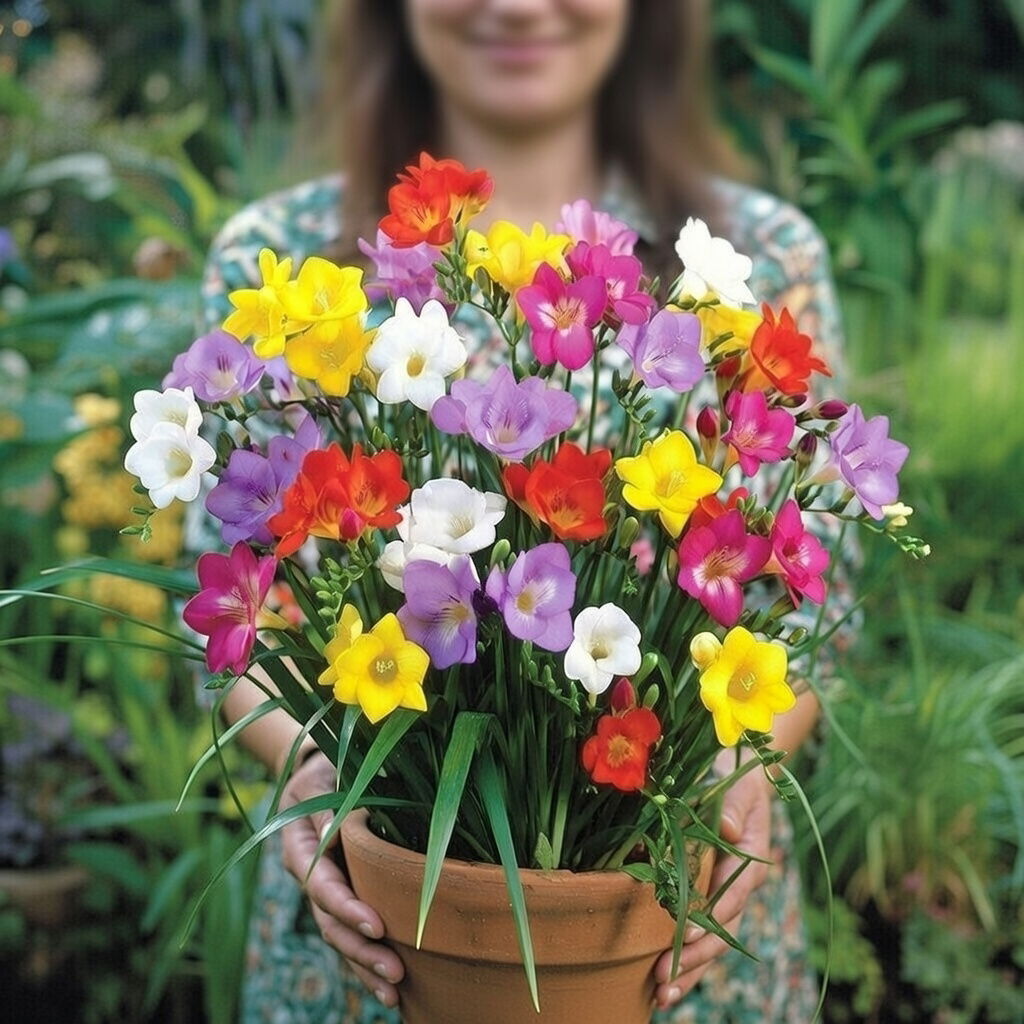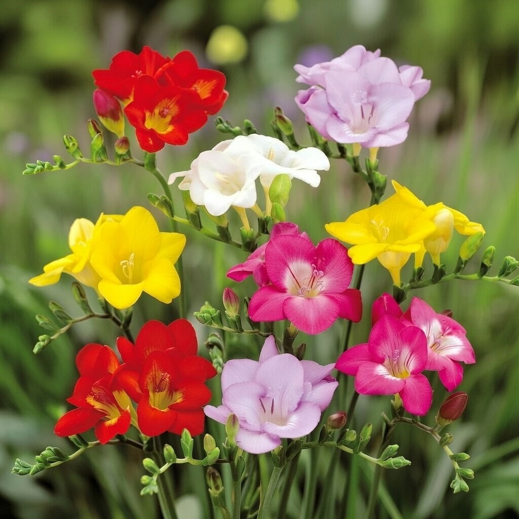 Fresia er en fantastisk blomst, der spreder glæde og farve i haver og buketter. De er kendt for sine smukke og velduftende blomster. I dette mix får du fresiaerne i forskellige farver som hvid, gul, lilla og rød.