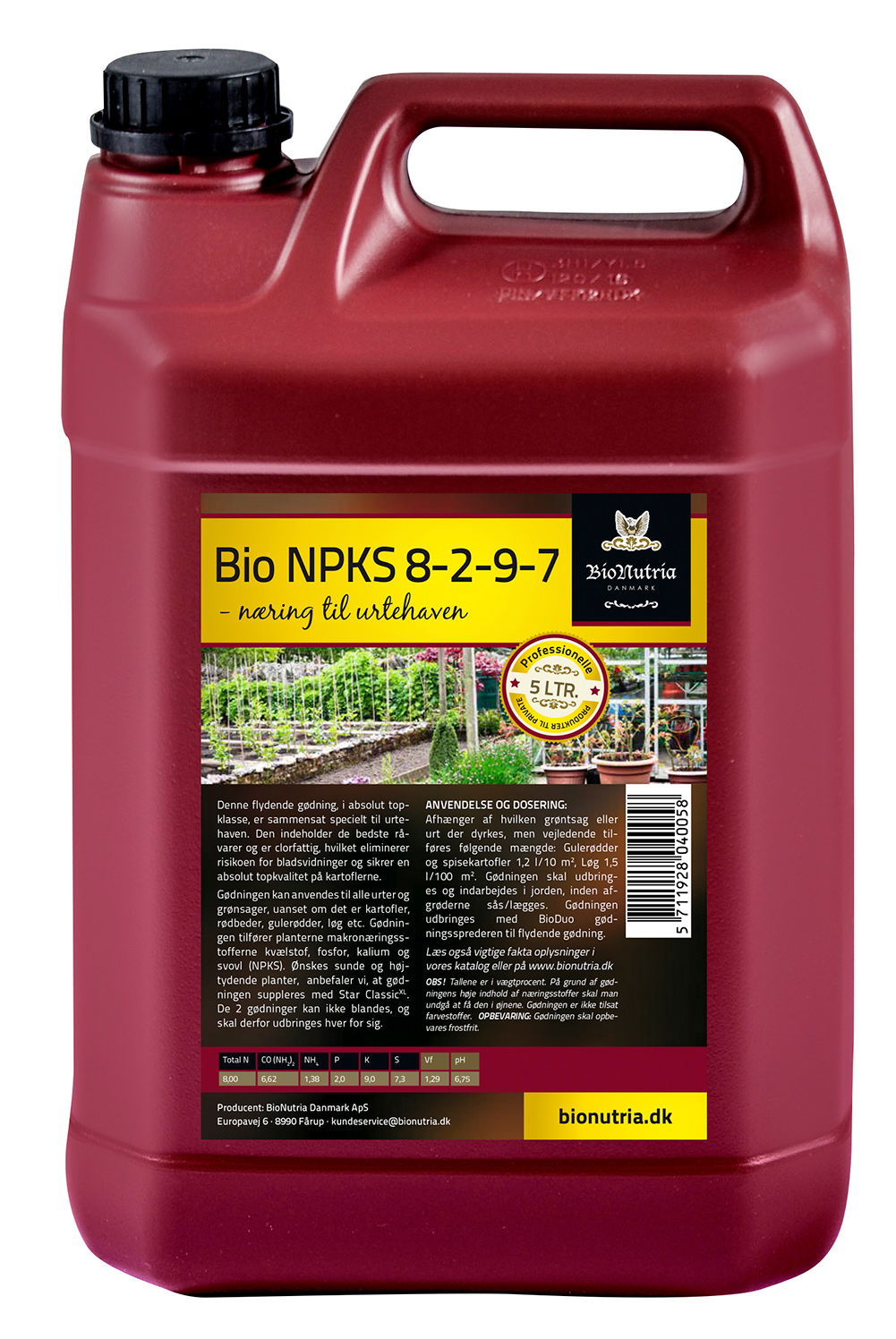 BioNutria NPKS 8-2-9-7 er en gødning specielt udviklet til urtehavens grøntsager, bær, nødder og frugt. BioNutria NPKS 8-2-9-7 kan bruges over alt i køkkenhaven, og tilfører planterne makronæringsstofferne kvælstof, fosfor, kalium og svovl (NPKS).