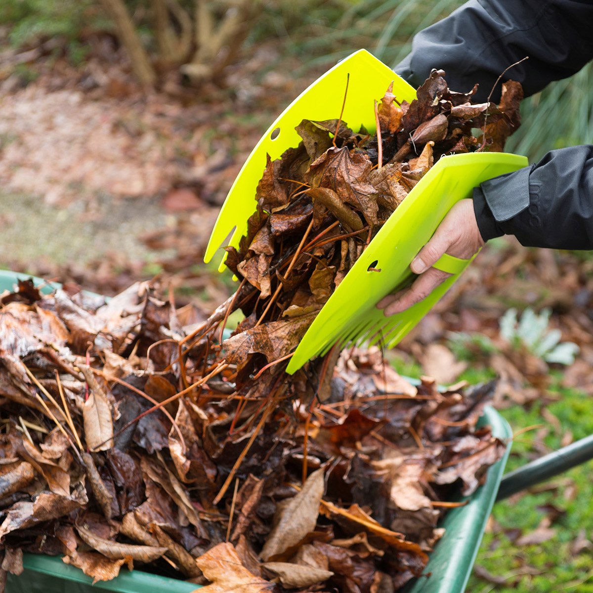 Du får ikke trætte arme med bladopsamleren, da de ikke vejer ret meget. Nederst på opsamleren er der tænder, som gør det nemt at fejre bladene eller græsset sammen.