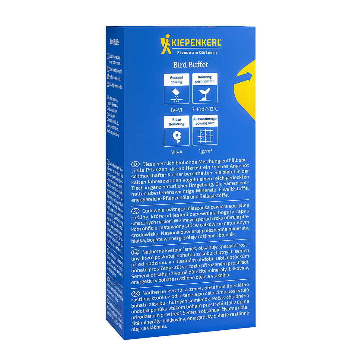 Med denne blomsterblanding kan du hjælpe havens fugle på en helt naturlig måde. Blandingen giver ikke blot et flot og frodigt udtryk i haven, men fungerer også som værdifuld føde for fuglene, når efterår og vinter melder deres ankomst.