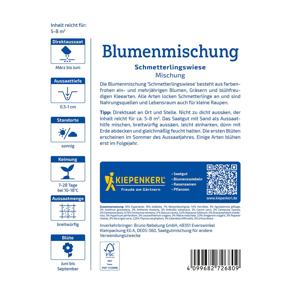 Frøene sås direkte på friland. For en jævn fordeling kan frøene blandes med lidt sand inden såning. Spred frøene ud, dæk dem let med jord og hold området fugtigt, indtil spiringen er i gang. Når blomsterne springer ud, bliver haven et attraktivt opholdssted for sommerfugle, bier og andre bestøvere.