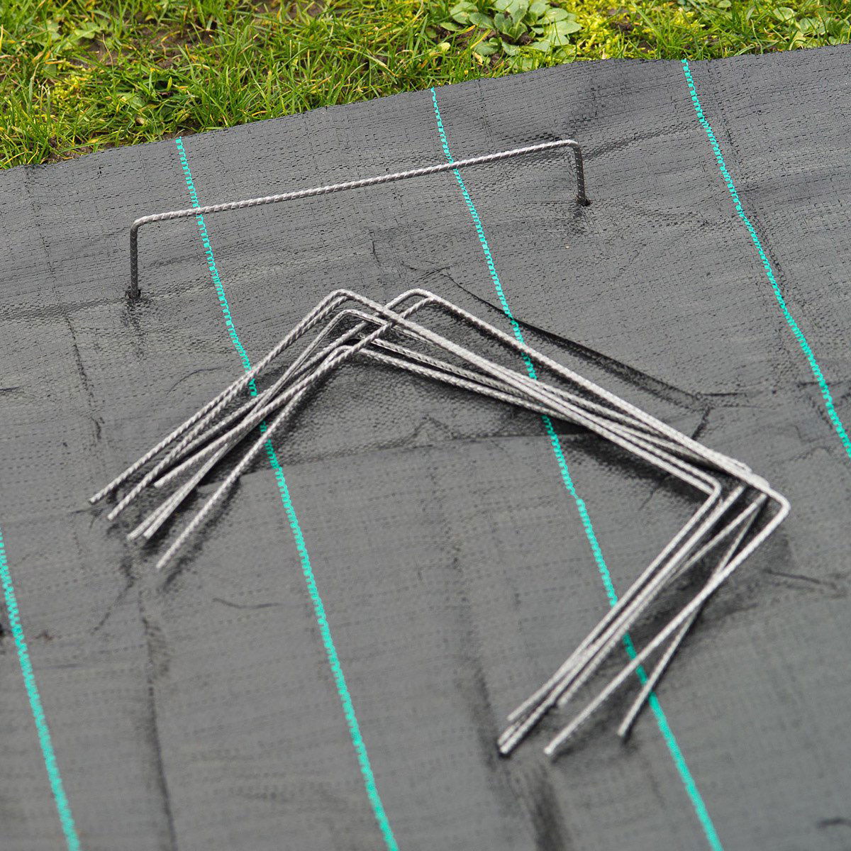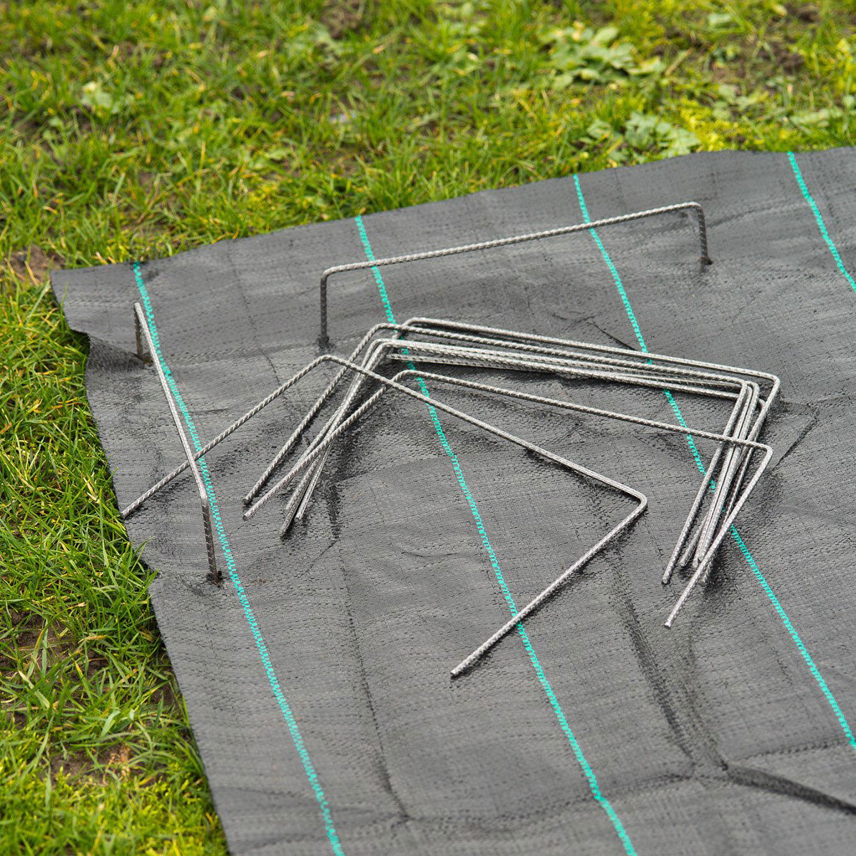 Med fæstningskrogene bliver det enkelt og effektivt. Du kan bruge dem til at sikre dugens kanter i jorden og holde den stram, så ukrudtet ikke kan vokse igennem stoffet.