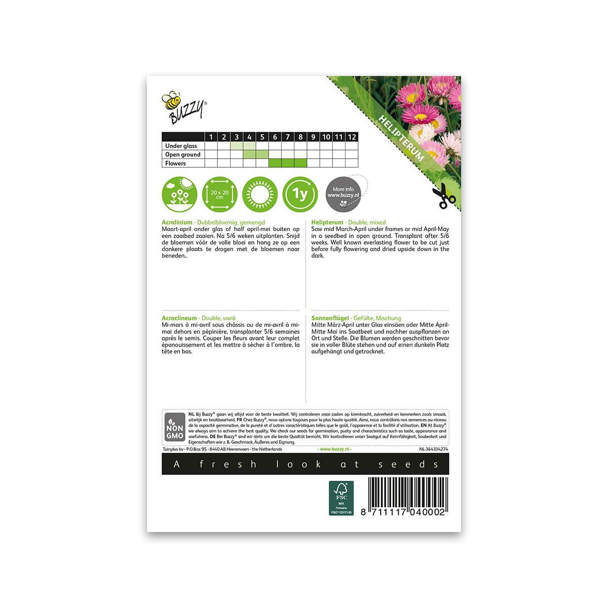 Pluk nyudsprugne blomster og hæng dem til tørre med hovederne nedad, så får du den skønneste evighedsbuket. En nem blomst at dyrke, dog vær forsigtig med de spæde stilke når blomsten plukkes.