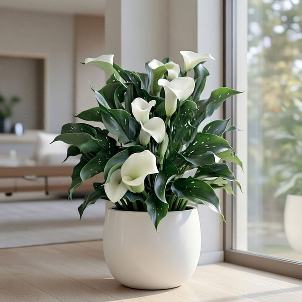 Zantedeschia, også kendt som calla, er en elegant plante med store, hvide blomster, der blomstrer fra juli til oktober. Den egner sig både til haven, krukker og som stueplante.