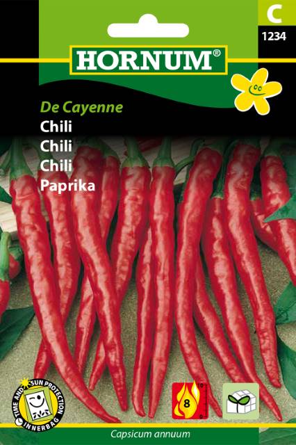 Chili da Cayenne (Capsicum annuum) er en robust og udbytterig sort med stærke frugter.