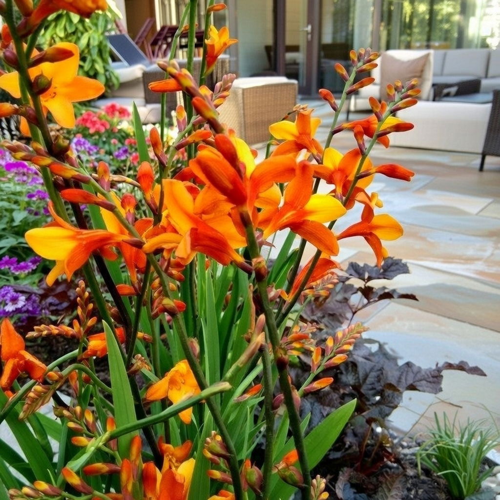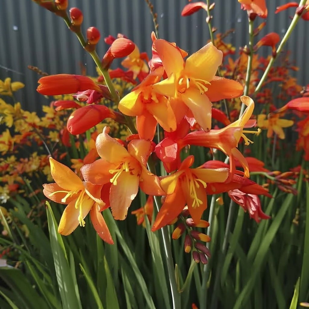 Crocosmia er en nem og stabil staude, som vender tilbage år efter år. Den passer perfekt i staudebede, mellem græsser eller i krukker og bringer liv til haven hele sommeren.