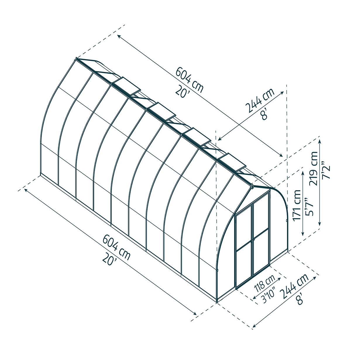 Bella drivhus har en bredde på 2,4 meter og et klokkeformet design, der giver ekstra plads og forbedret vindmodstand. De brede dobbeltdøre og høje indgang gør det nemt at arbejde inde i drivhuset, flytte planter eller opbevare værktøj.