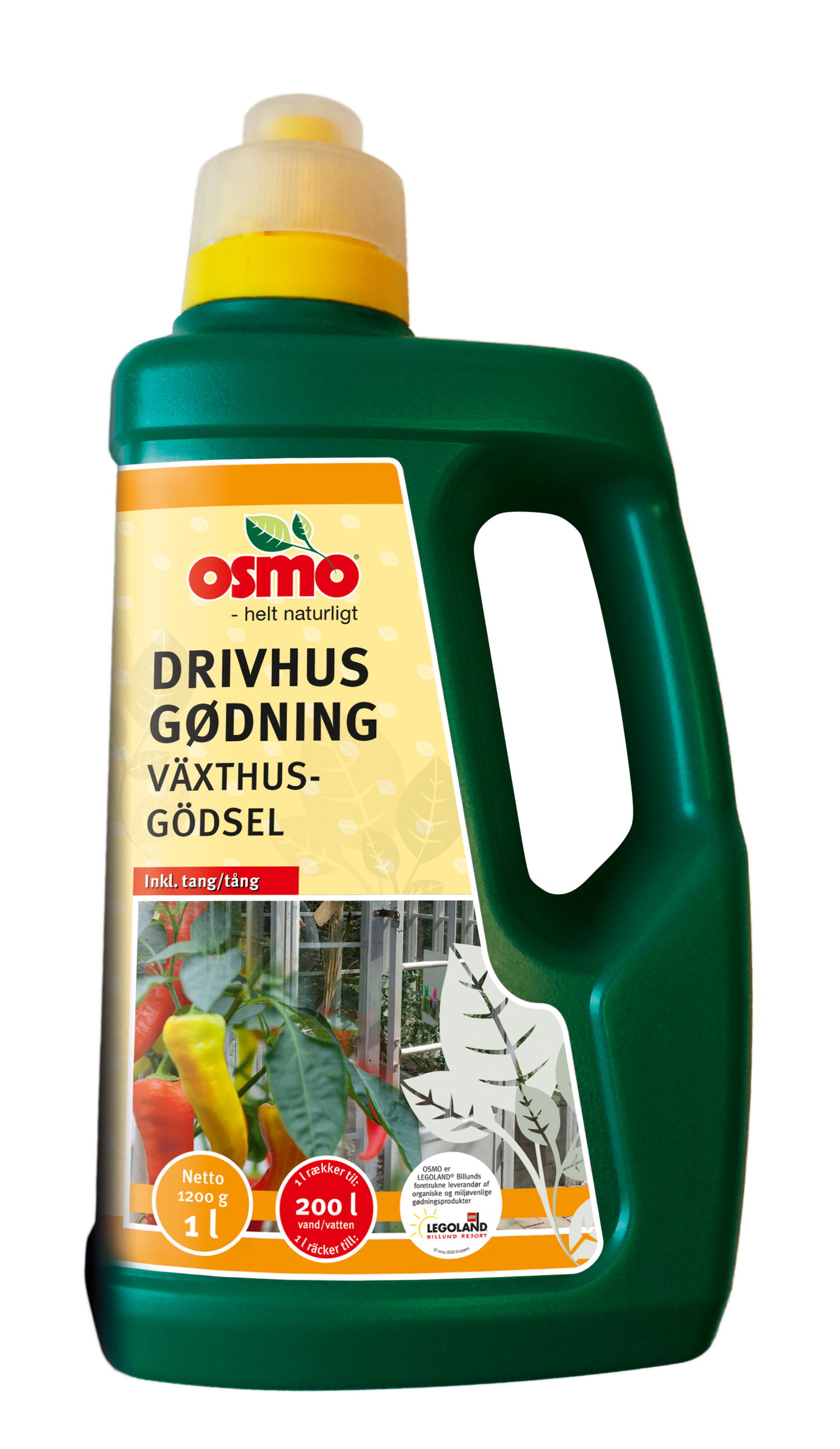 OSMO Drivhus Gødning er flydende NPK-gødning 8-2-6, som er tilpasset dyrkning af frugt og grøntsager i drivhuse enten i jord eller i plantesække.