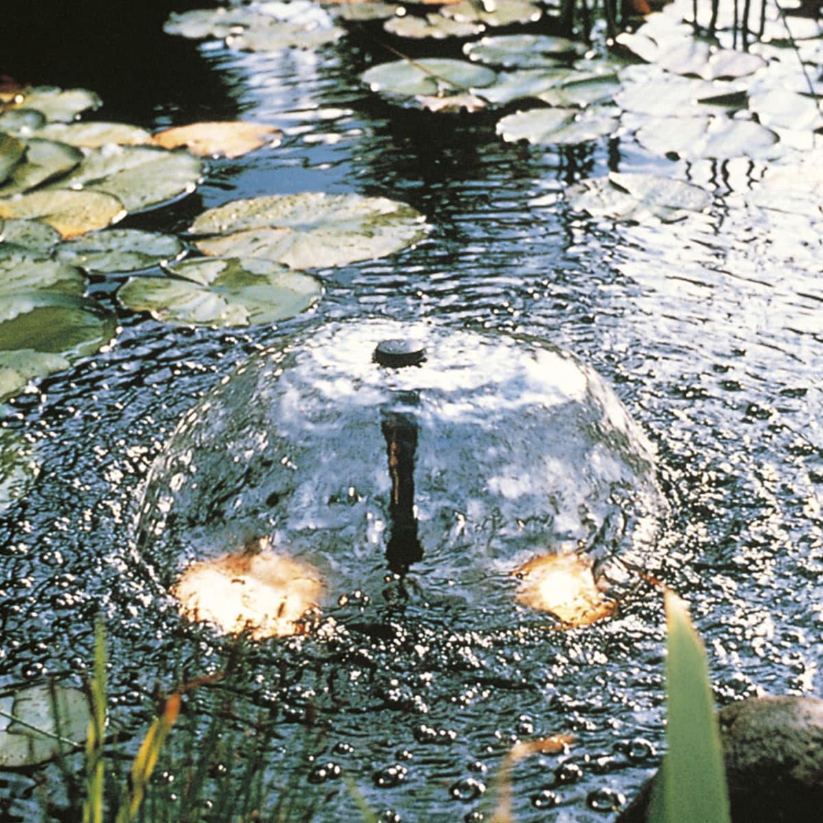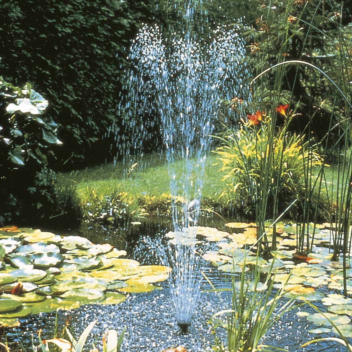 Pumpen er velegnet til havedamme og vandanlæg og leveres med forskellige dyser, som skaber forskellige vandmønstre, herunder en rolig vandklokke og en kraftig vulkanstråle.
