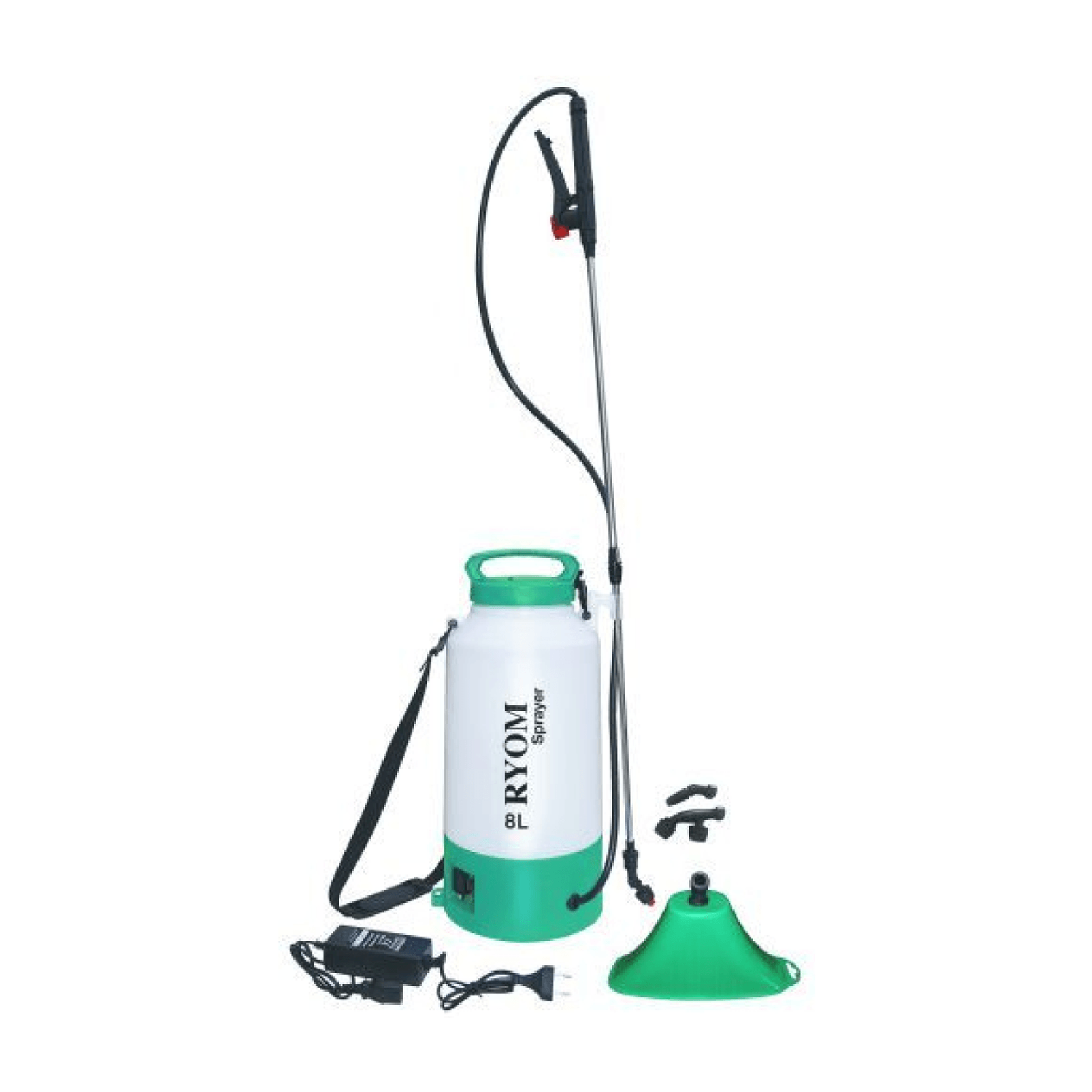 Elsprøjten har en kapacitet på 8 liter, og der medfølger 75 cm teleskop sprøjtetrør, sprøjteskærm, oplader, 2 ekstra dyser og skulderstrop.