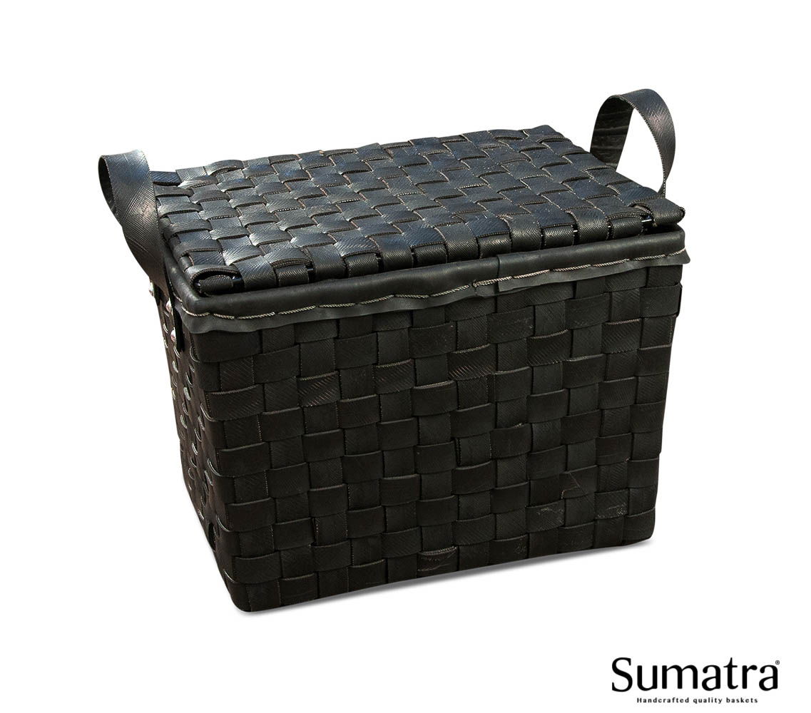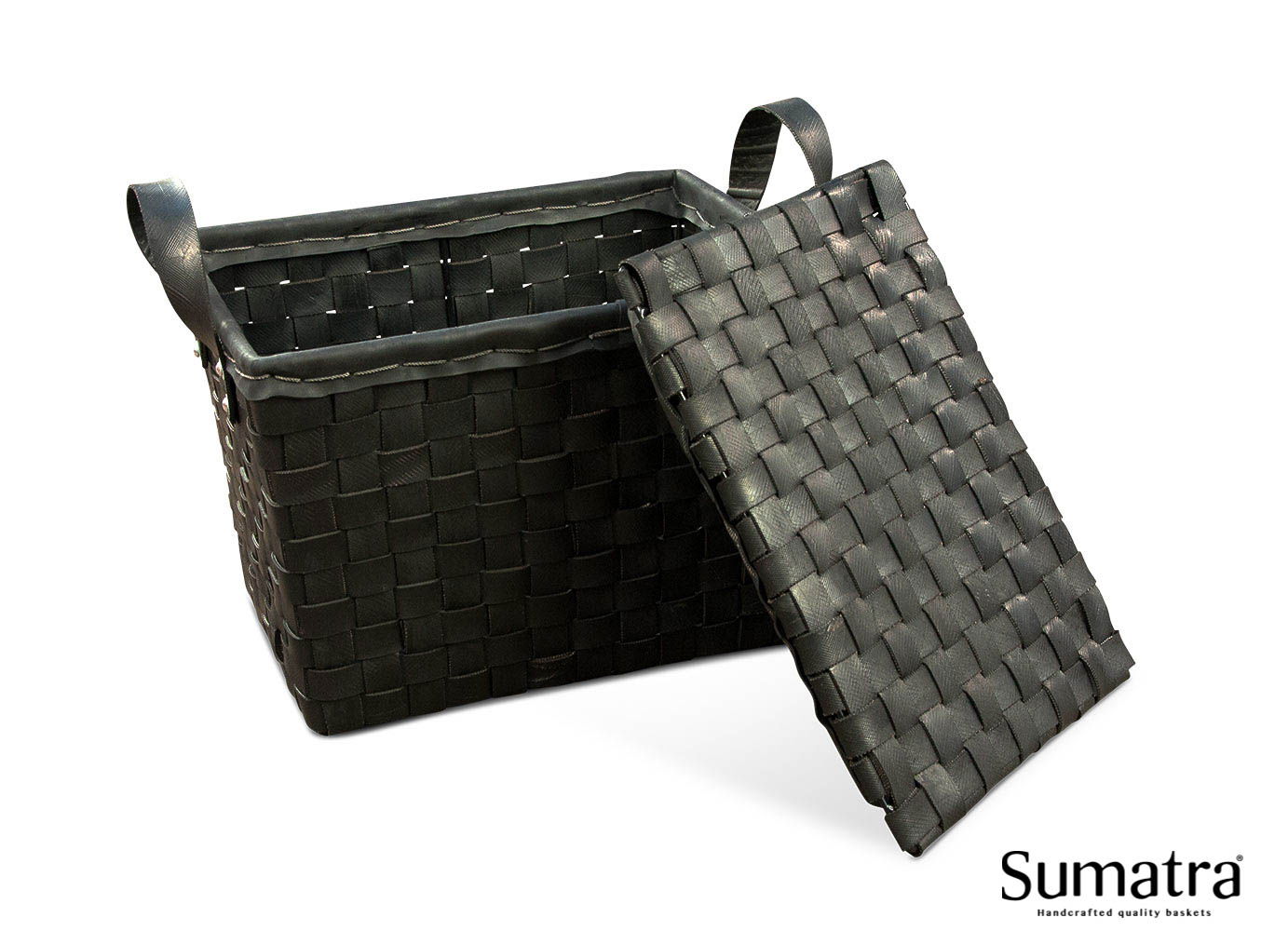 Flot flette gummikurv der vil passer perfekt ind i stuen, med prakisk låg til at skjule indholdet.
