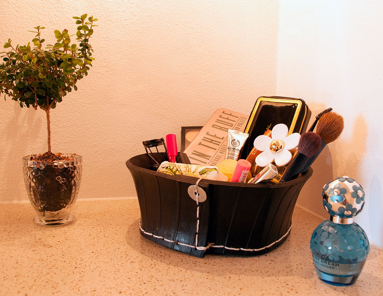 Håndlavet i genanvendt gummi. Bemærk at gummikurvene er ikke vandtætte.