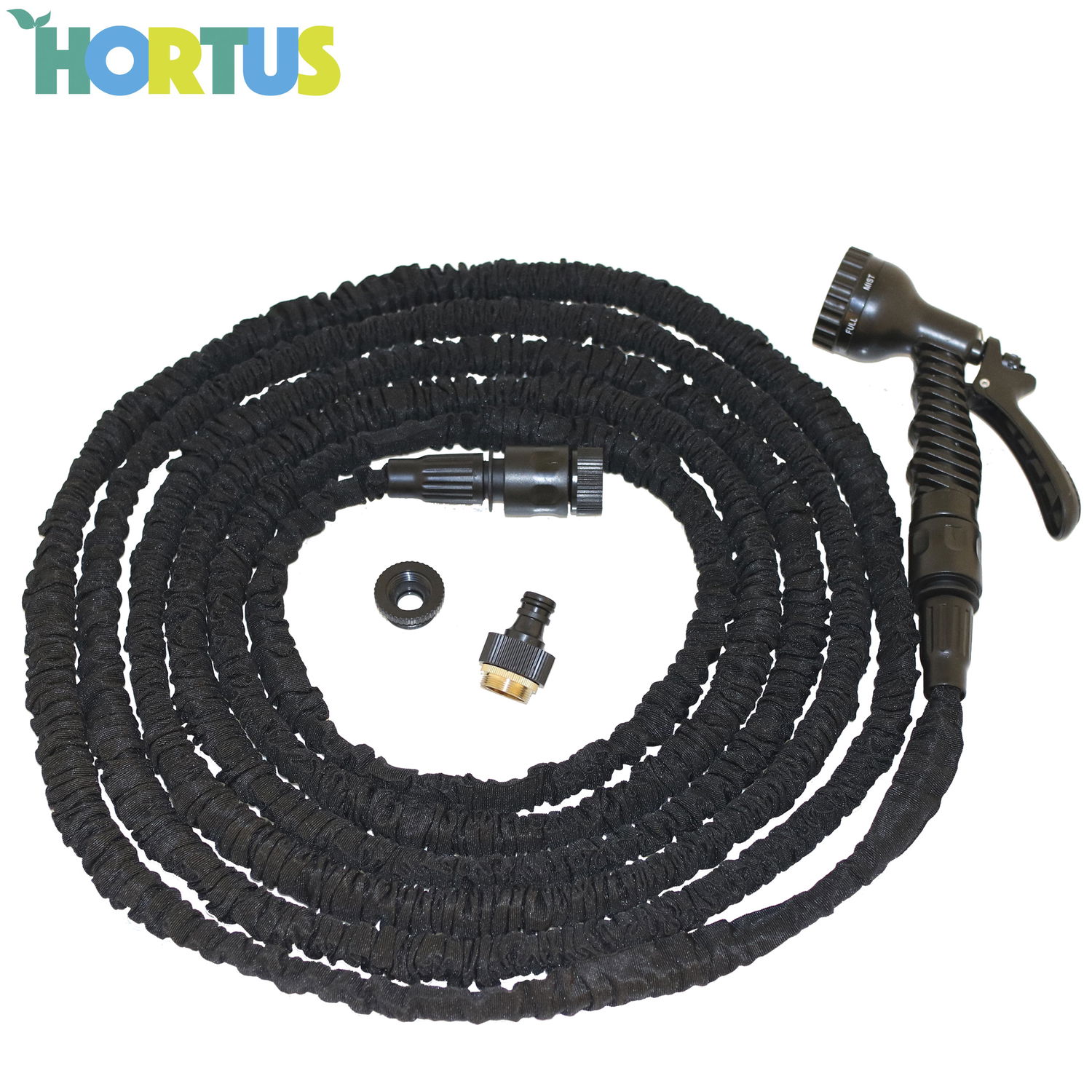 Vandslangen er fleksibel, og måler sammentrukket 5 meter. Når vandet løber igennem slangen udvides den til 15 meter.