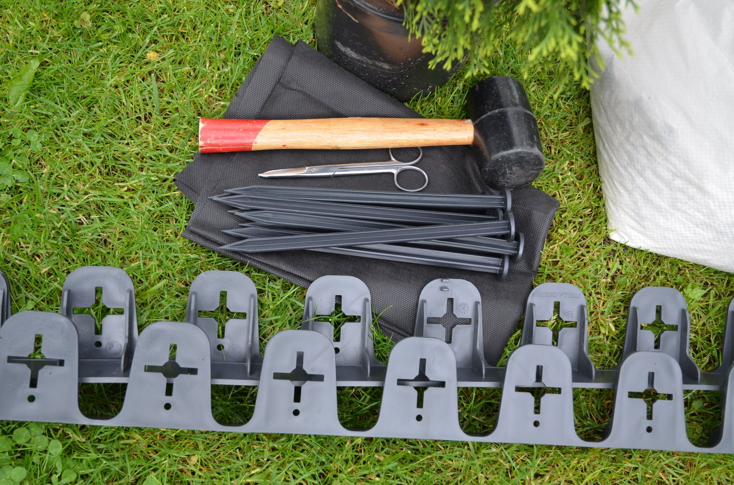 Græskanten er formbar og udført i kraftig plast i højden 6 cm i højden og 80 cm i længden. Kanten sættes fast med jordspyd. Opsætter du græskanterne i en runding, anbefaler vi ca. 4 jordspyd pr. græskant. Opsætter du lige kanter anbefaler vi 2-3 jordspyd pr. kant.