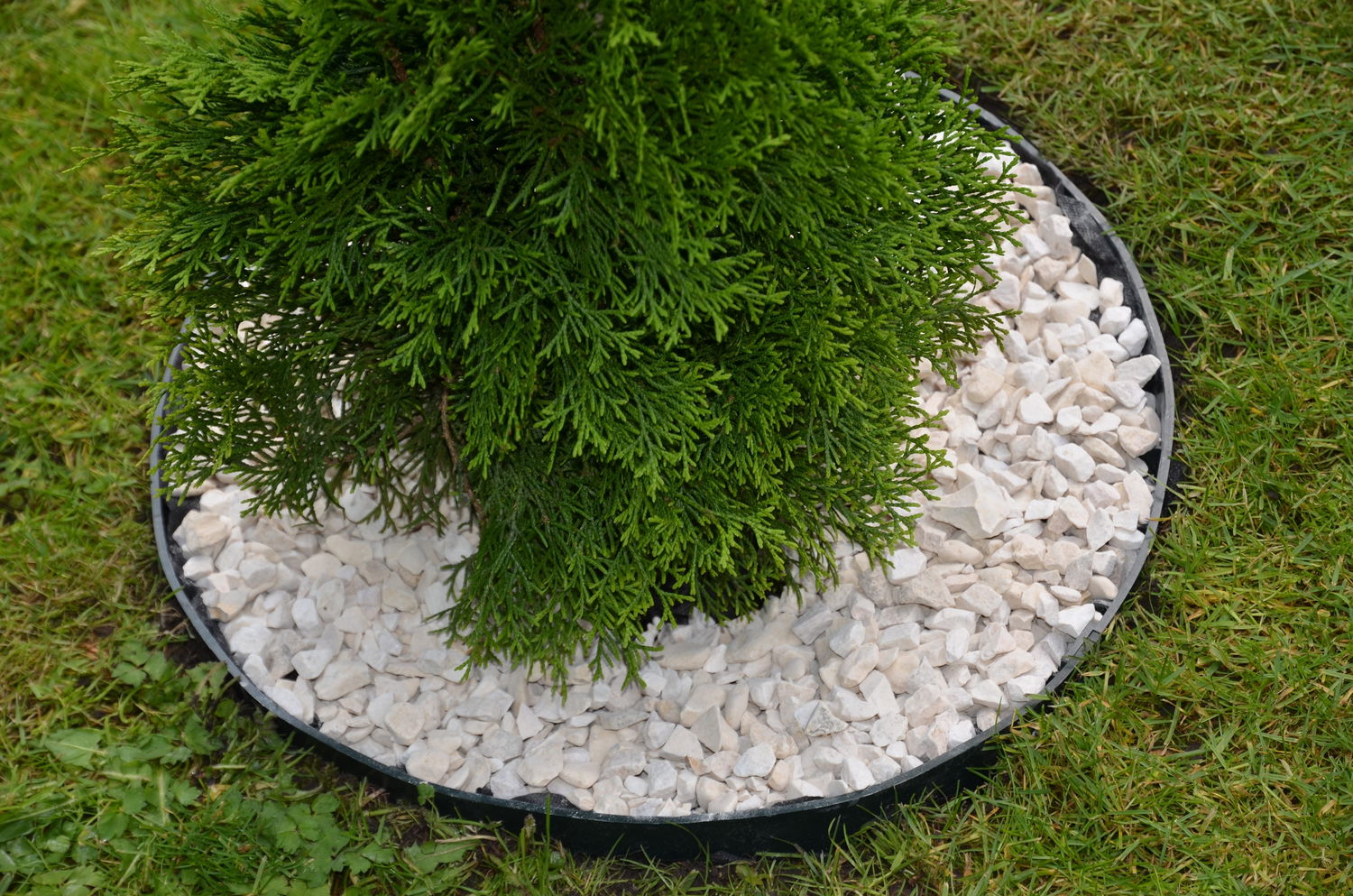Fleksibel høj græskant i plast til enkelt og effektiv afgrænsning af eksempelvis bede, buske og træer. Græskanterne kan let sættes i forlængelse af hinanden og er meget velegnede til havens bløde kurver.