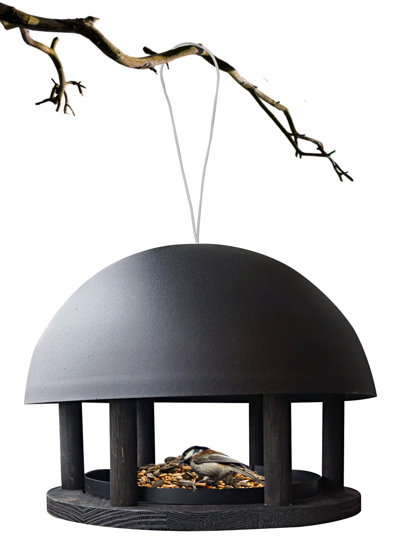 Foderhus Dome, sort træ og pulverlakeret stål - hængende