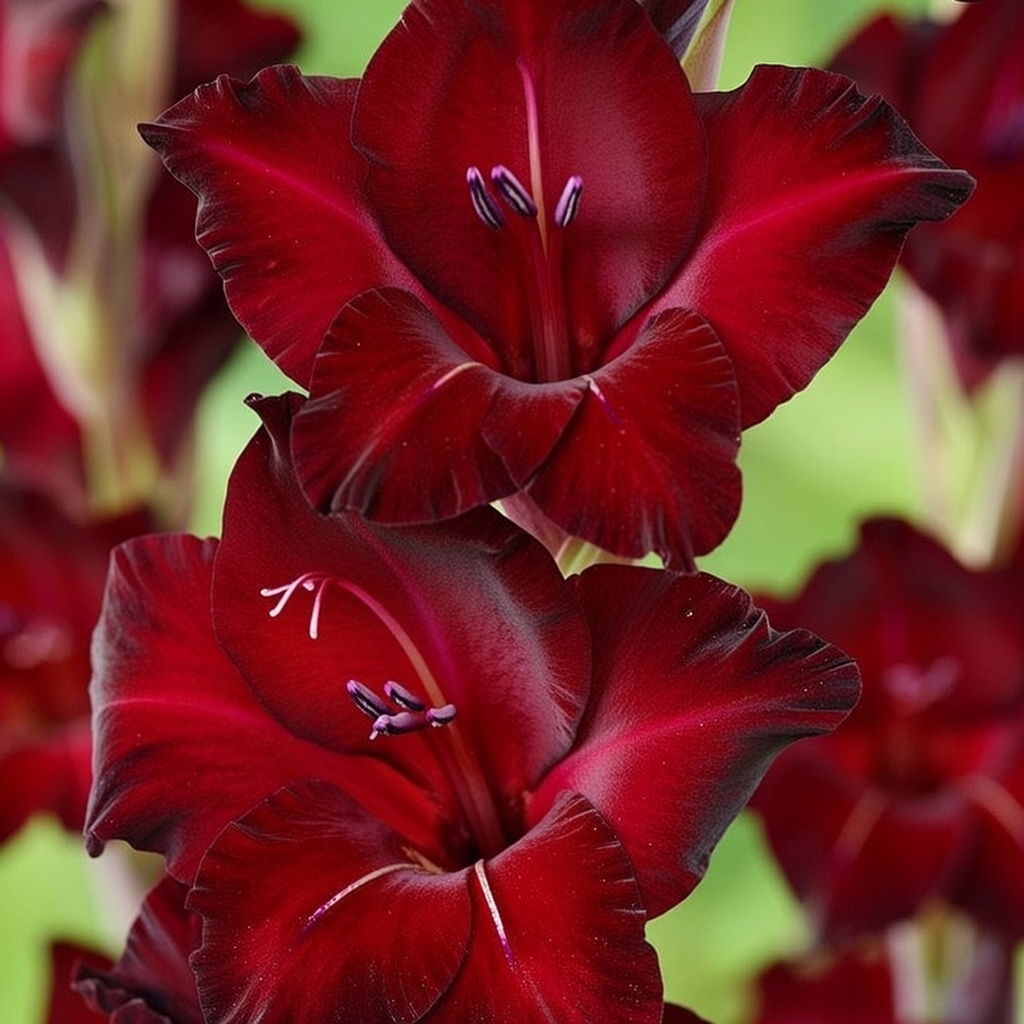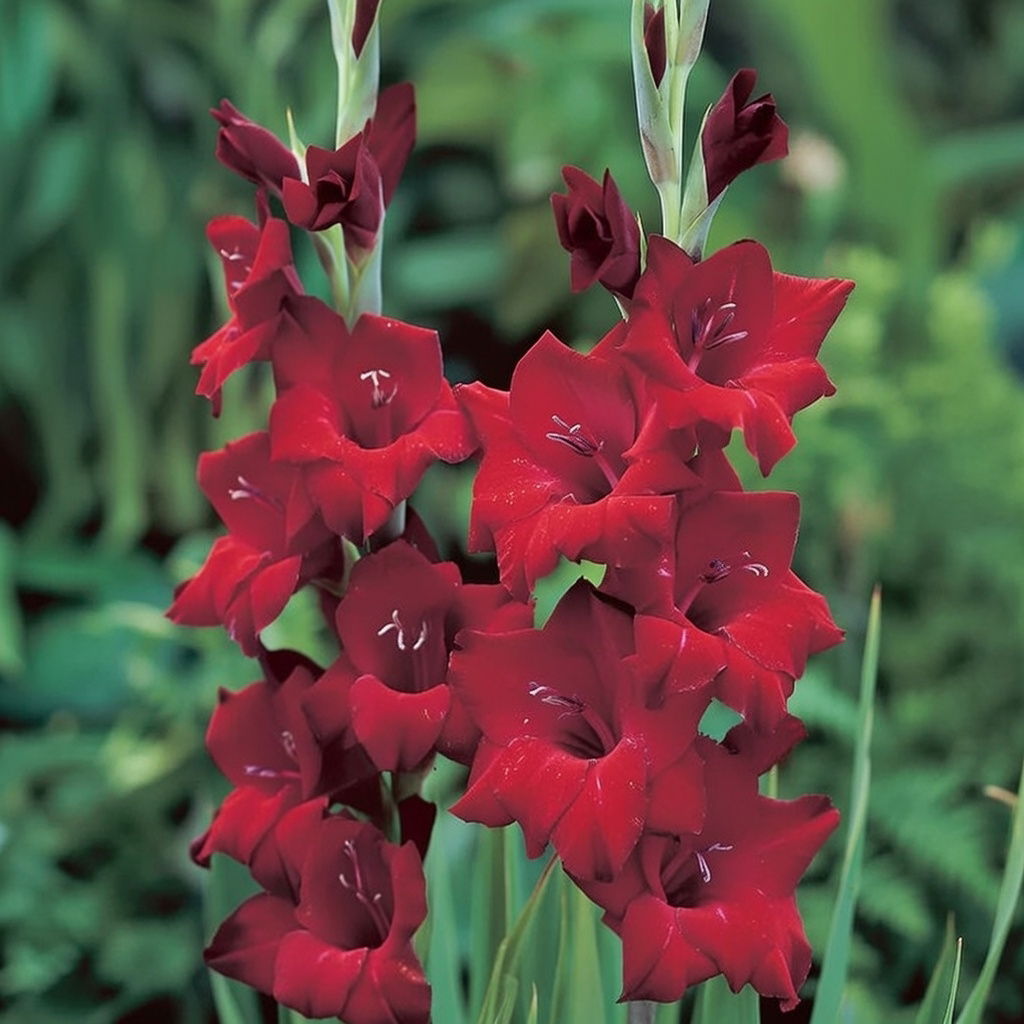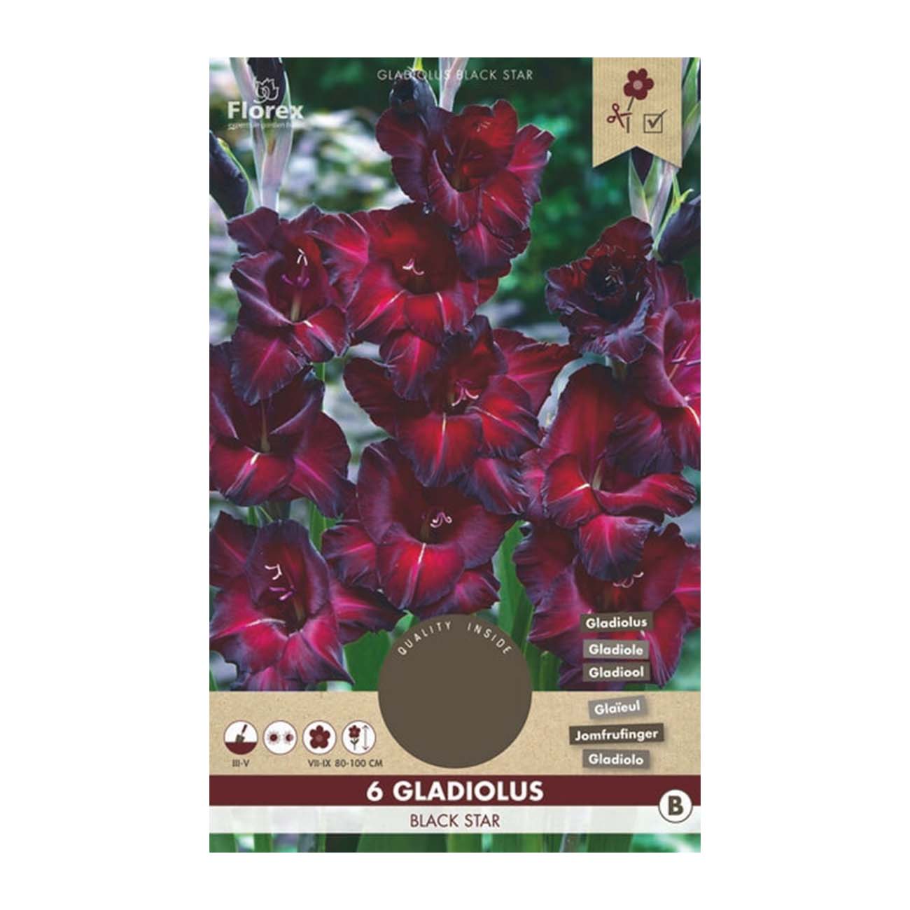 Gladiolus er en klassisk havefavorit med lange blomsteraks i mørkerøde og lilla nuancer. Den blomstrer fra juli til september og egner sig særligt godt som snitblomst med sine ranke stængler og fyldige blomster.
