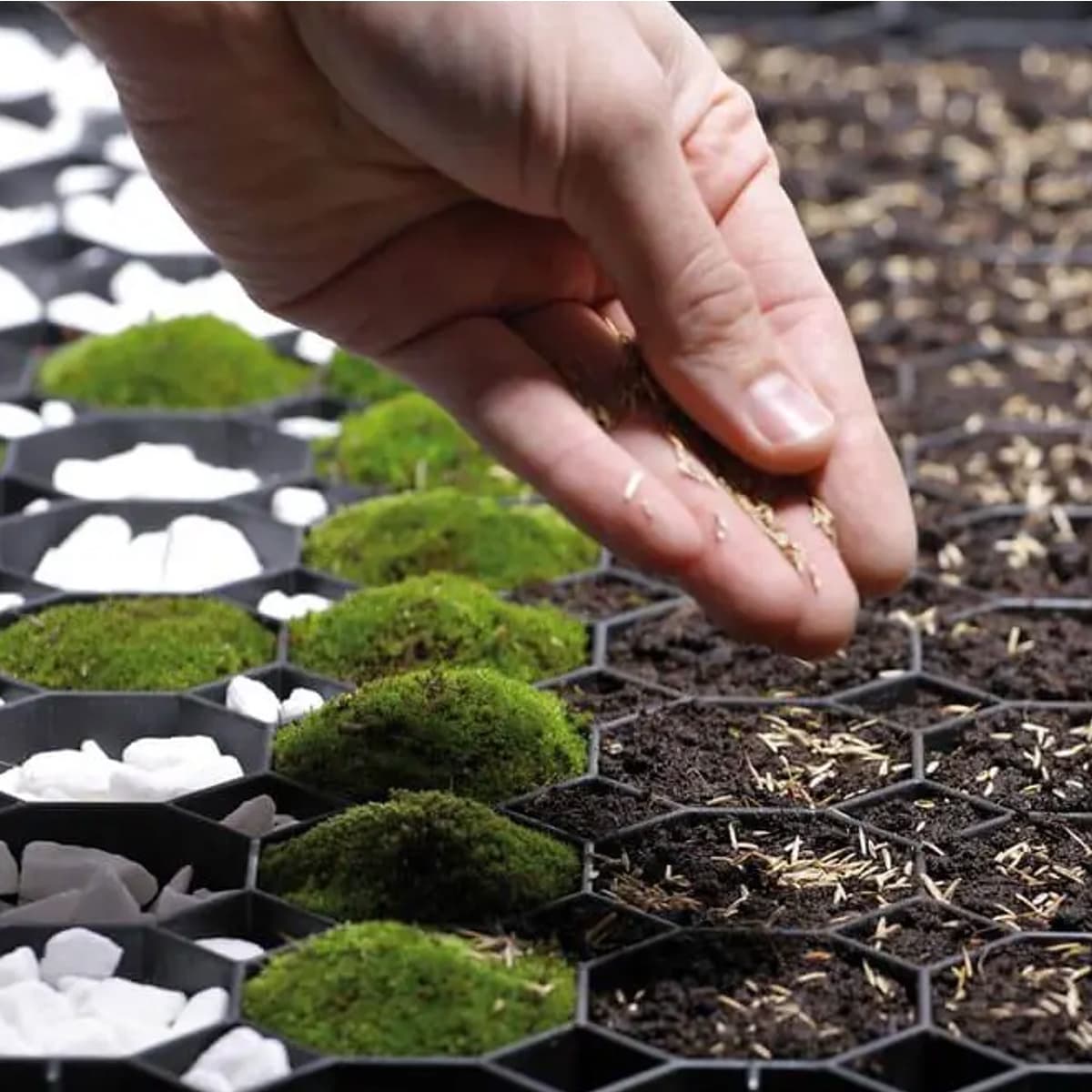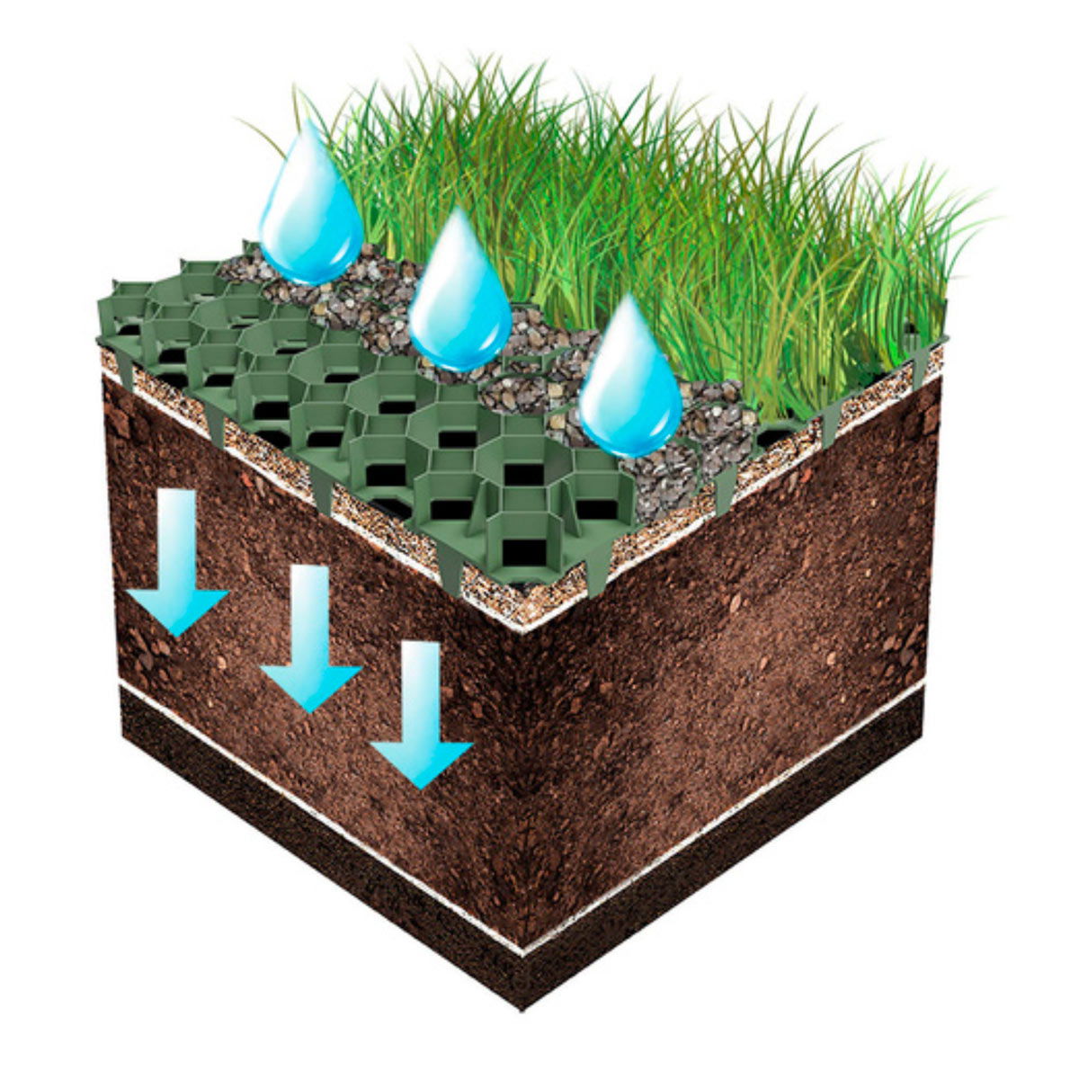 Græsarmering i en pakke med 10 stk. Praktisk og holdbar græsarmering til brug på forskellige typer underlag bl.a. græs, jord, grus og mindre sten. Armeringen holder jorden på plads, modvirker erosion og styrker underlaget.
