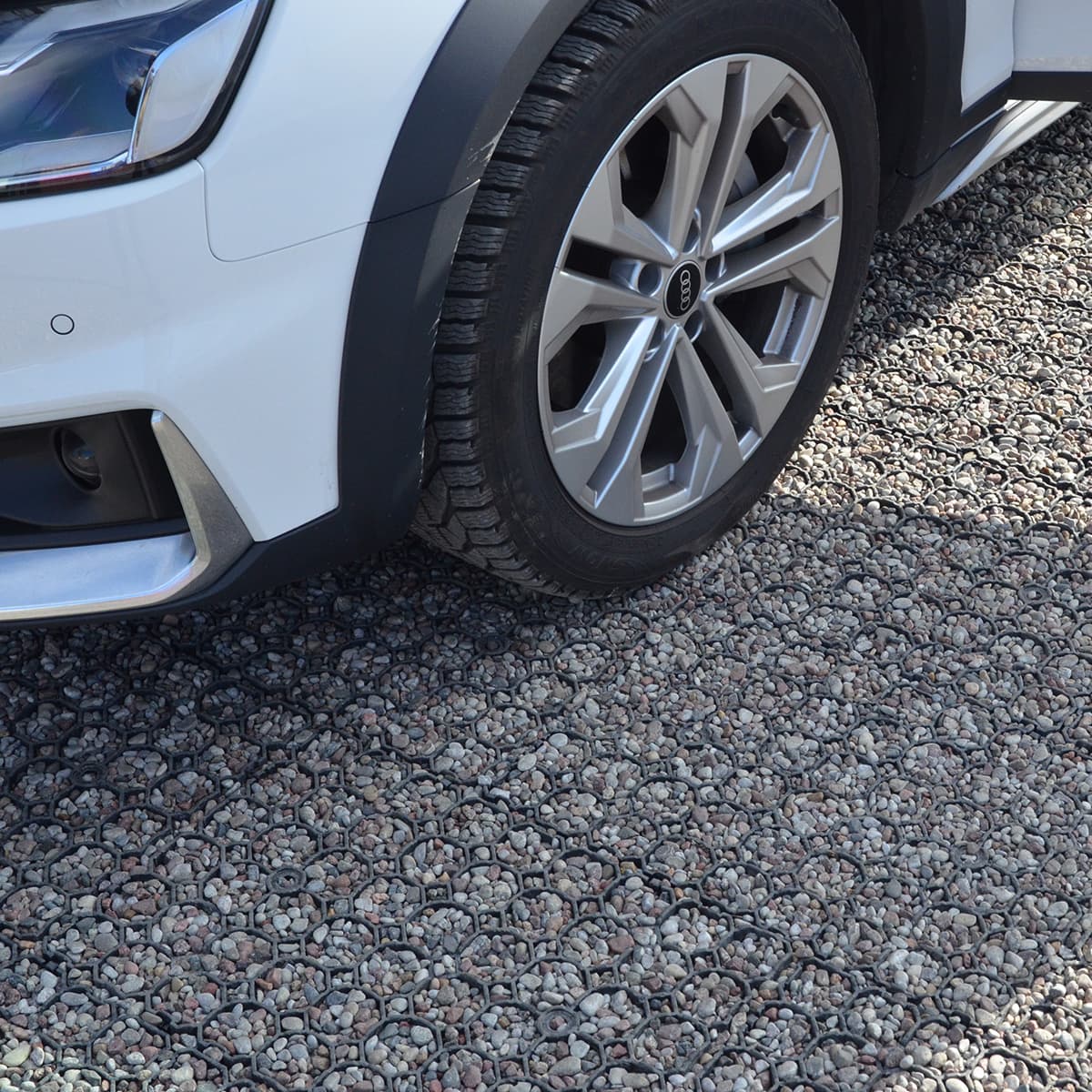 Græsarmering er velegnet som underlag i indkørslen til bl.a. bil og campingvogn og kan også fungere som sti fra f.eks. skur til hus. Græsarmeringen kommer med huller i der gør, at regnvandet kan sive direkte ned i jorden, så græsplænen fortsat kan forblive grøn og pæn.