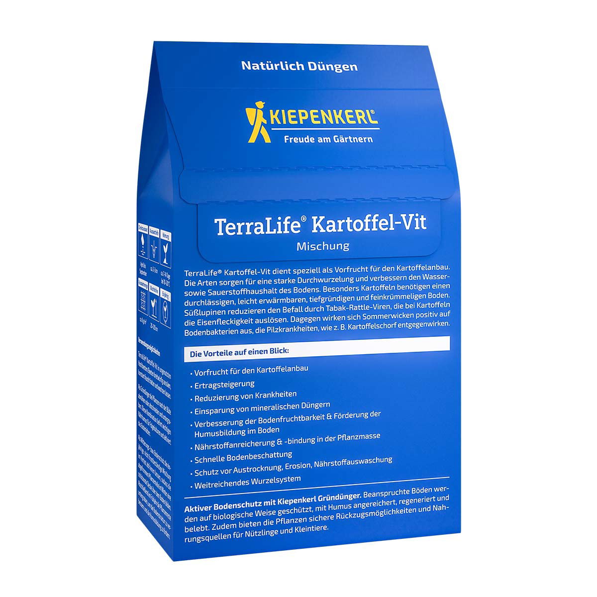Terra-Life Kartoffel-Vit er en grøngødningsblanding, der er udviklet specifikt til at skabe optimale vækstbetingelser for kartofler. Planterne arbejder aktivt i jorden og løsner den med deres rødder, så den bliver mere luftig, varm og smuldrende – netop den jordtype, som kartofler trives bedst i.