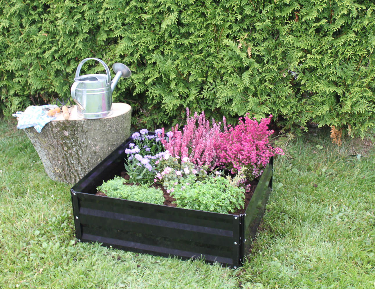Metal højbed, model Plug S, i galvaniseret stål med sortpulverlakering. Inkl. jordspyd til montage. Vedligeholdelsesfri.