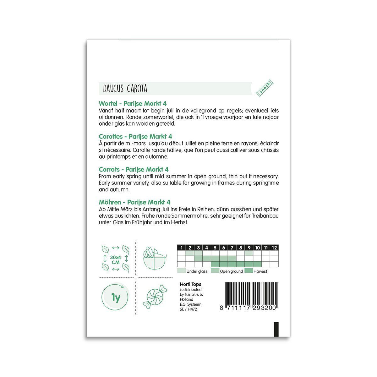 Paris Market 4 gulerods frø, er en sort der kommer med små snackgulerødder, der er milde og søde i smagen.