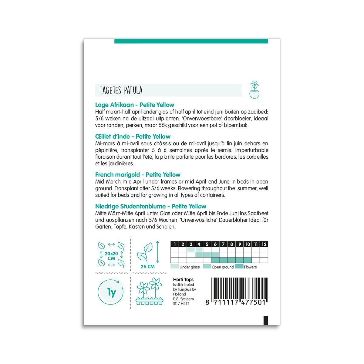 Tagetes Petite Yellow fungerer nærmest som små solstråler i haven, pga. den smukke solgule farve. Denne mindre variant når omkring 25 cm i højden og er perfekt til krukker, blomsterbede eller som en livlig kantplante.