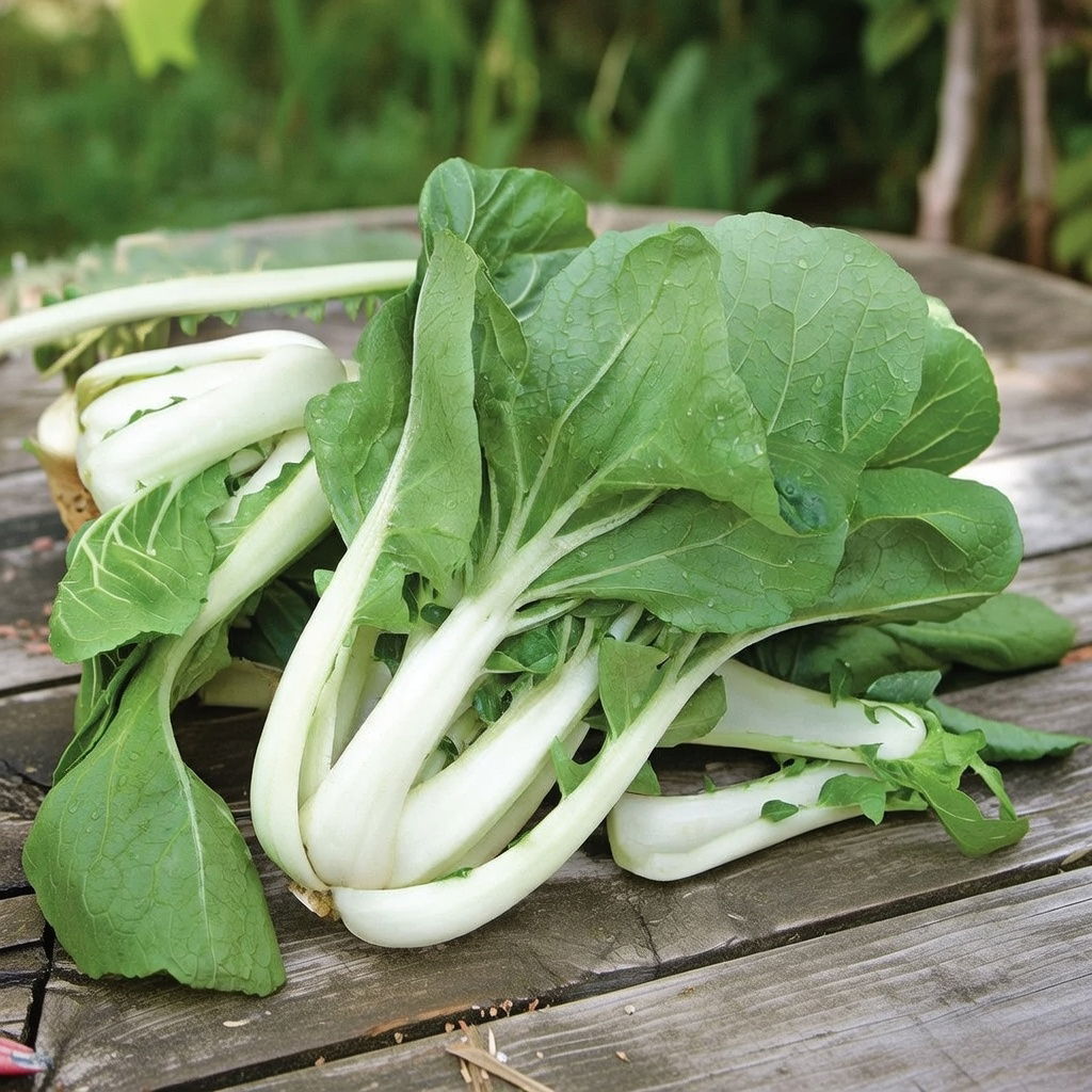 Pak Choi har saftige, sprøde, hvide stængler og mørkegrønne blade, der sidder i en slags rosette. Den smager mildt, og har en let nøddeagtig smag, hvilket gør den perfekt til mange retter.