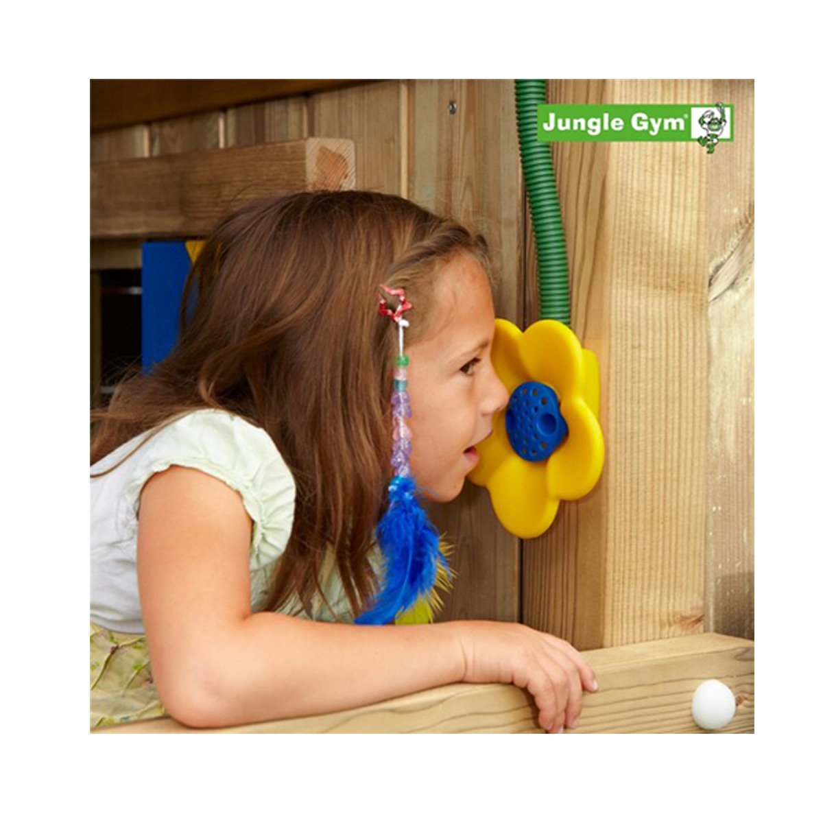 Jungle Gym talerør gør det muligt at kunne tale til hinanden gennem røret, hvor mund- og ørestykket er begge formet som blomster.