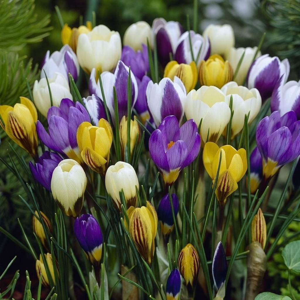 Den botaniske blanding af vilde krokus giver et flot hav af farver til din have, bede, græsplæne eller altan. Kronbladene på de forskellige vilde krokus er enten snehvide, eller har en intens gul eller en dyb violet farve.