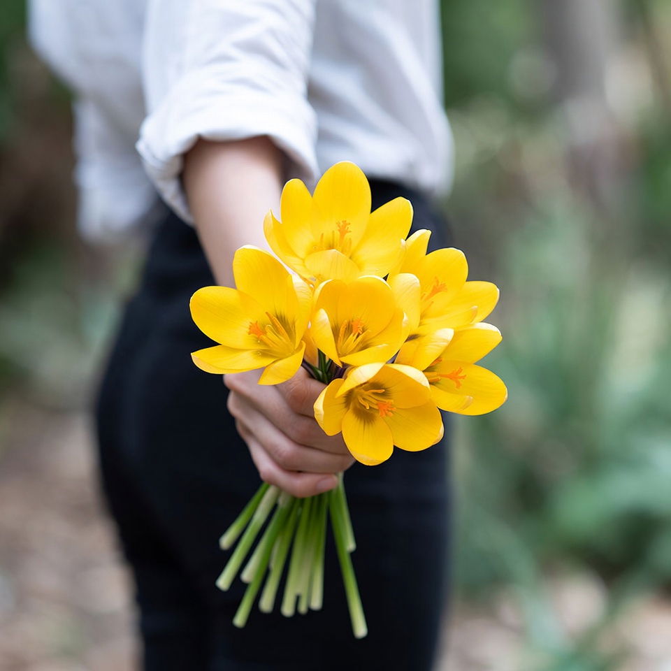 Den store gule havekrokus har ikke sit navn for ingenting, for den er kendetegnet ved sine vidunderligt store, knaldgule kronblade. Derudover er den en rigtig tidlig blomstrende, og åbner sine blomster før alle andre forårsblomstrer. Den trives godt i alt fra altankasser, i højbed, i plantekasser på terrasse eller på friland i dit havebed.