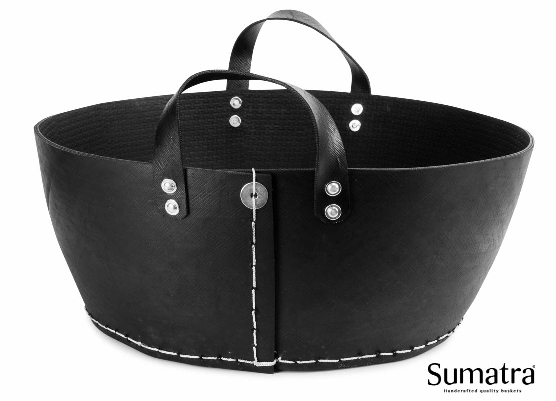 Lav og bred brændekurv udført i sort genbrugsgummi. Kurven en passer perfekt ved siden af pejsen og med den flotte lidt rå look, vil du glædes, hver gang du går forbi. Velegnet til såvel pejsebrænde som briketter.