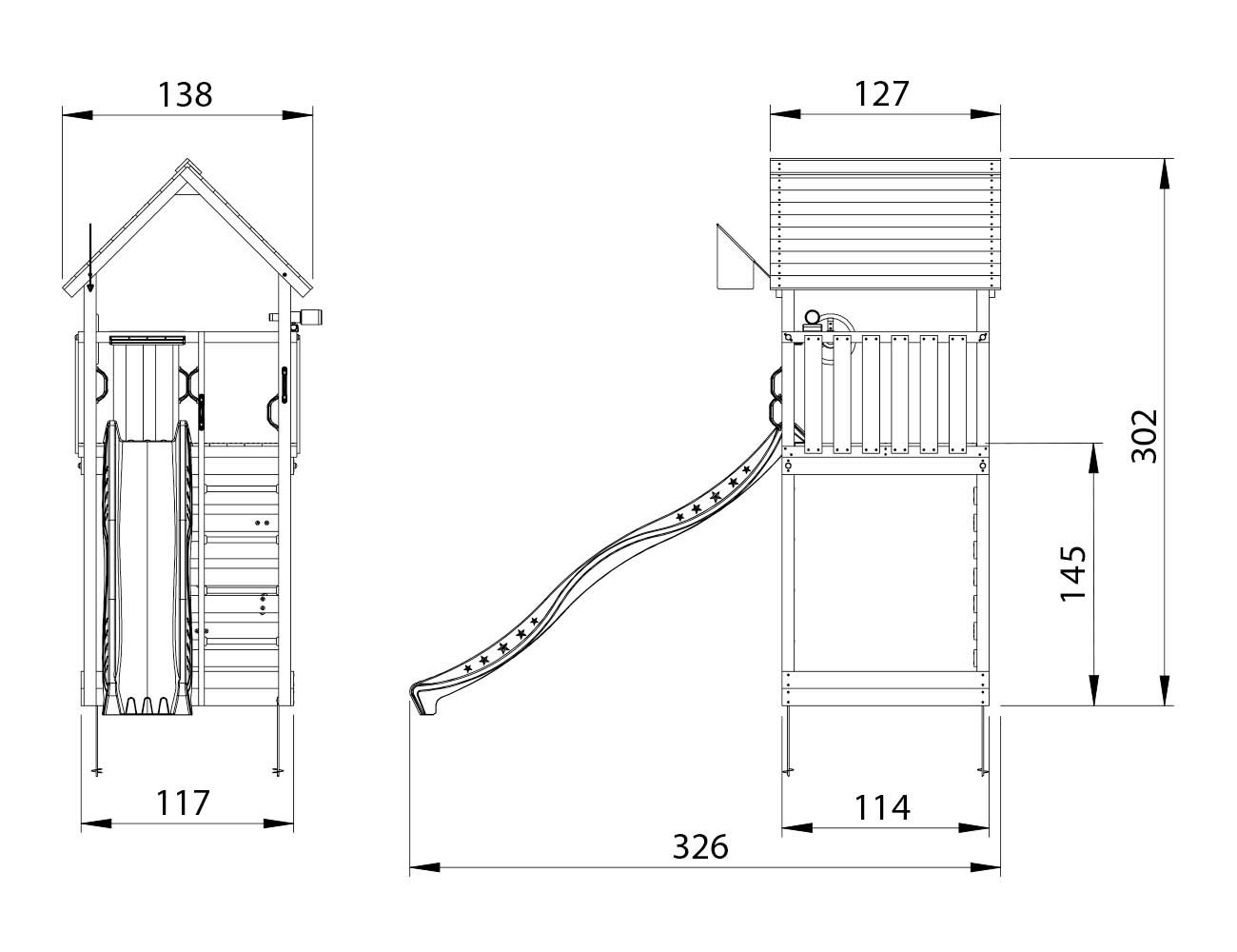 Areal ekskl. sikkerhedsareal: B:138 x D:326 x H: 302 cm
