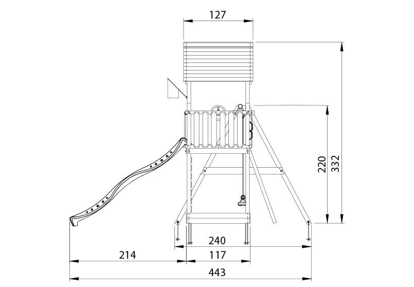 Areal ekskl. sikkerhedsareal legetårn: B:223 x D:379 x H: 332 cm