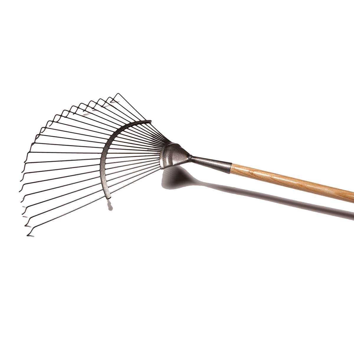 Krumpholz løvrive er et solidt og effektivt redskab, ideelt til pleje og vedligeholdelse af græsplæner, blomsterbede og havearealer. Den brede rive er håndsmedet i hærdet stål og udstyret med fine, tætplacerede tænder, som effektivt opsamler græsafklip, blade og haveaffald uden at beskadige underlaget.