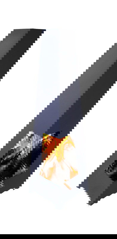 Kegleformet havepejs med firkantede former. Originalt design med placering af åbningen i hjørnet af pejsen, hvilket giver et godt udsyn til ildstedet.
