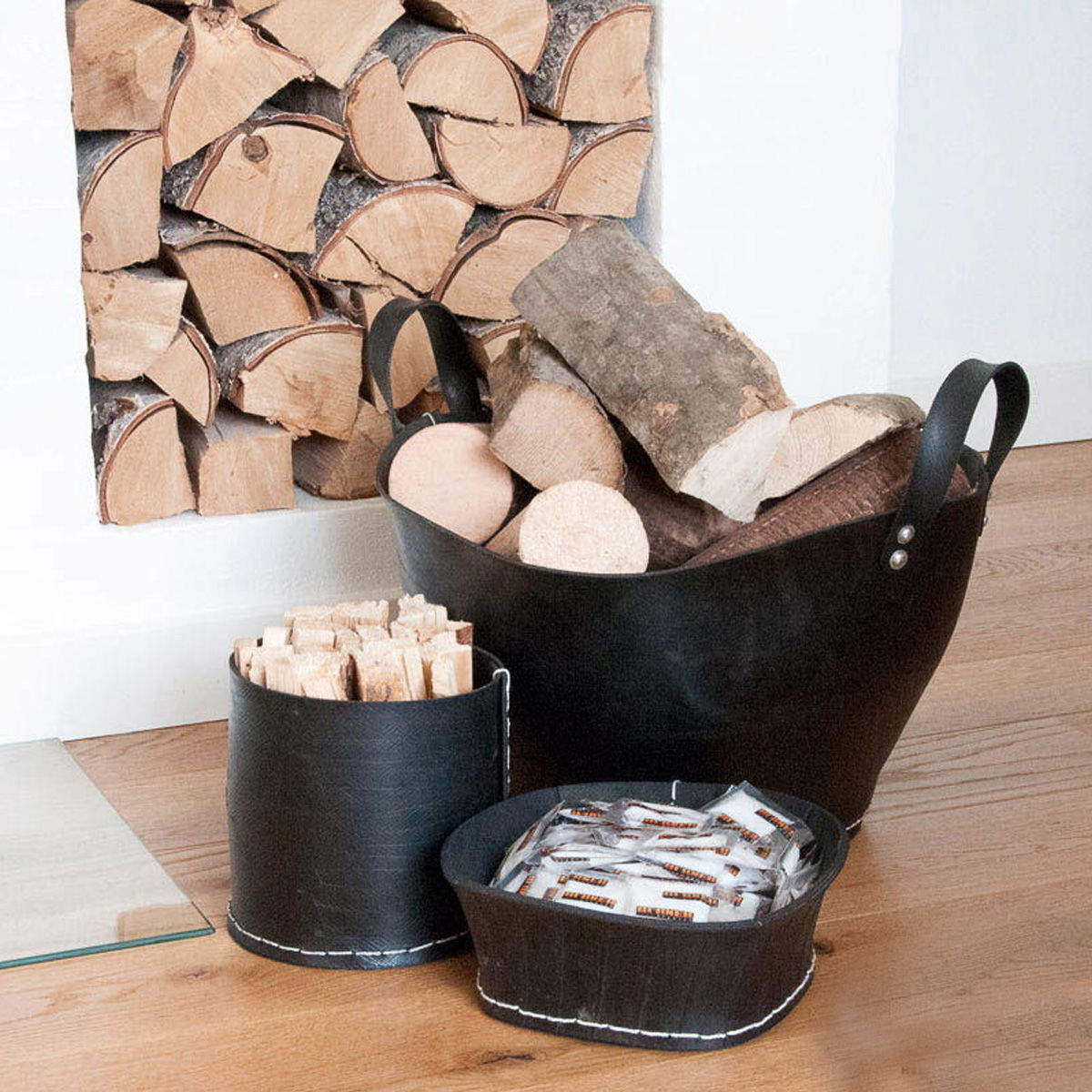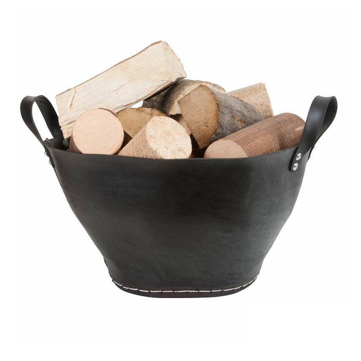 Den klassiske brændekurv, men i et råt look og lavet af genbrugsgummi. Kurven i gummi er meget solid og de to hanke er nittet fast på kurven med dobbeltnitter. Du kan også bruge kurven ude i haven, hvor den ville kunne finde anvendelse mange steder.