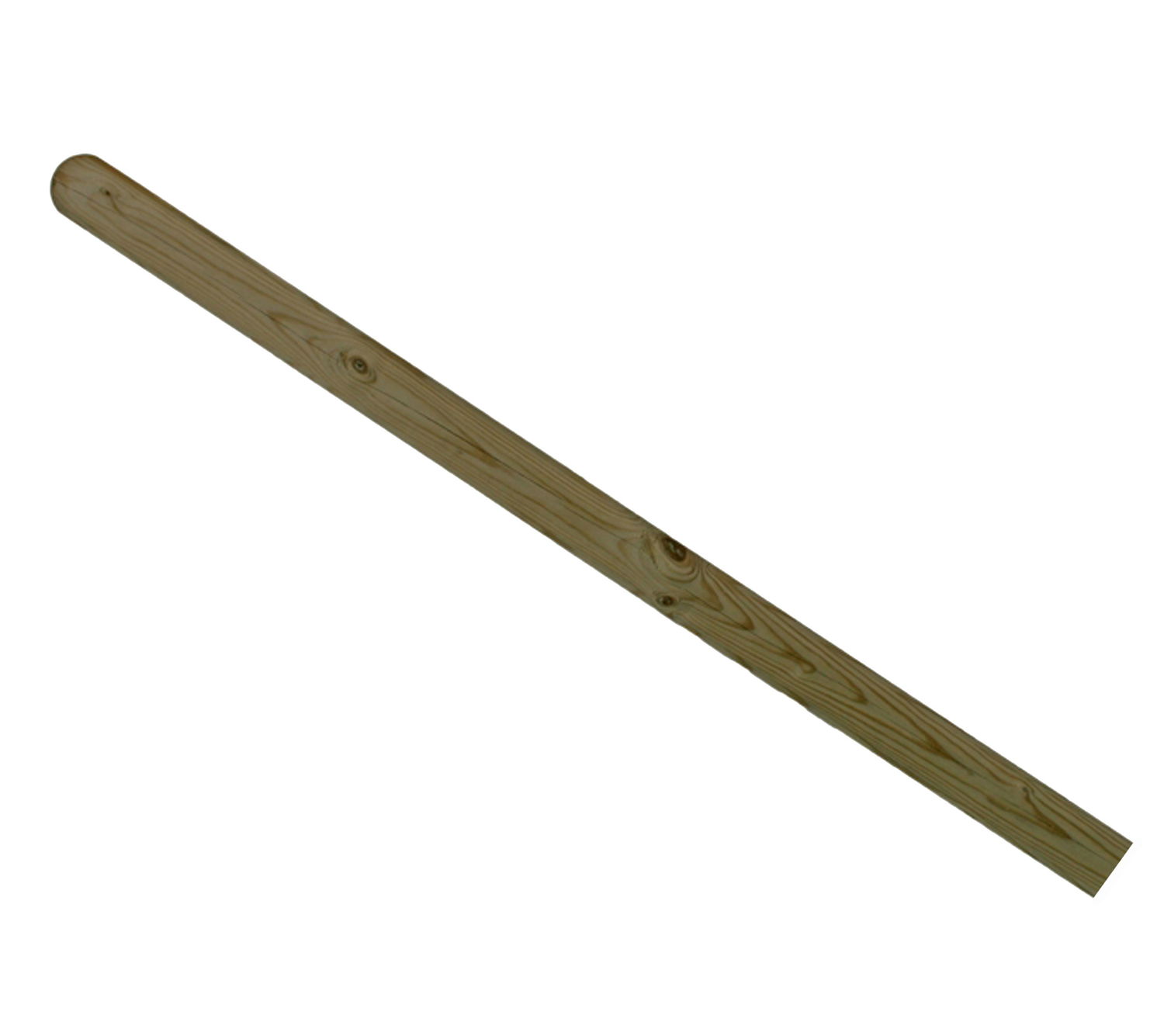 Fremstillet i trykimprægneret fyrretræ. Stolpen er vendbar, idet den er lige i den ene ende og afrundet i den anden ende.
