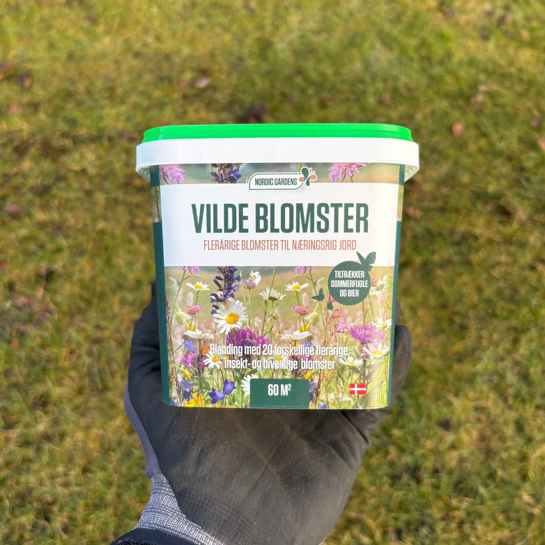 Vilde Blomster blomsterblandingen indeholder 20 forskellige flerårige blomster. Blomsterne giver et smukt alternativ til græsplæner, og sorterne udmærker sig ved at kunne trives på såvel mager som fed jord. Blandingen giver et værdifuldt levested og en vigtig fødekilde for sommerfugle, bier og insekter. Passer godt overalt i haven samt i højbede og krukker.