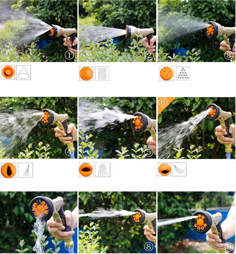Nordic Gardens sprøjtepistol er en stor hjælp, både hvis du vil vande planter udenfor eller rengøre dine udendørsarealer. Sprøjtepistolen har 9 forskellige sprøjtemønstre med indstillingsmuligheder for blandt andet: hård stråle, fin sprøjtetåge, flad stråle, perleregn og brus. Derved kan du tilpasse stråle og vandmængde til opgaven - eksempelvis en let vanding af sommerblomster, eller en grundig rengøring af bilen.