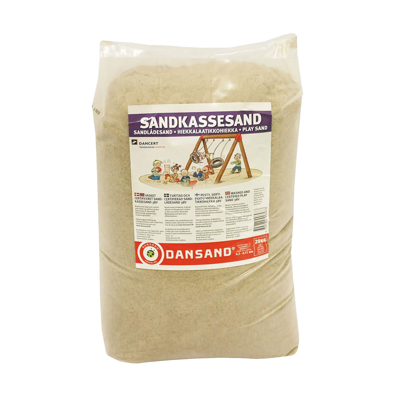 Du får 200 kg. certificeret sand med i pakken. Kvartssand opgravet vasket, siet/siktet og sækket op hos Dansand A/S i Danmark. Helt uden tilsætningsstoffer. Så kan du med god samvitighed lade dine børn gå i sandkassen. Leveres i sække af 20 kg.