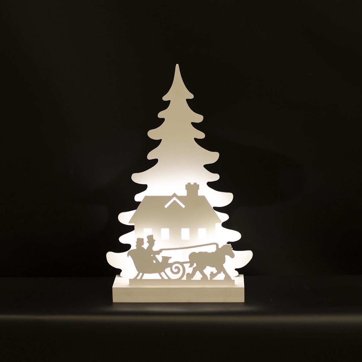 Du kan bruge julesilhuet som en flot dekoration ved en skænk, hylde eller i en vindueskarm, og den anbefales til indendørs brug.