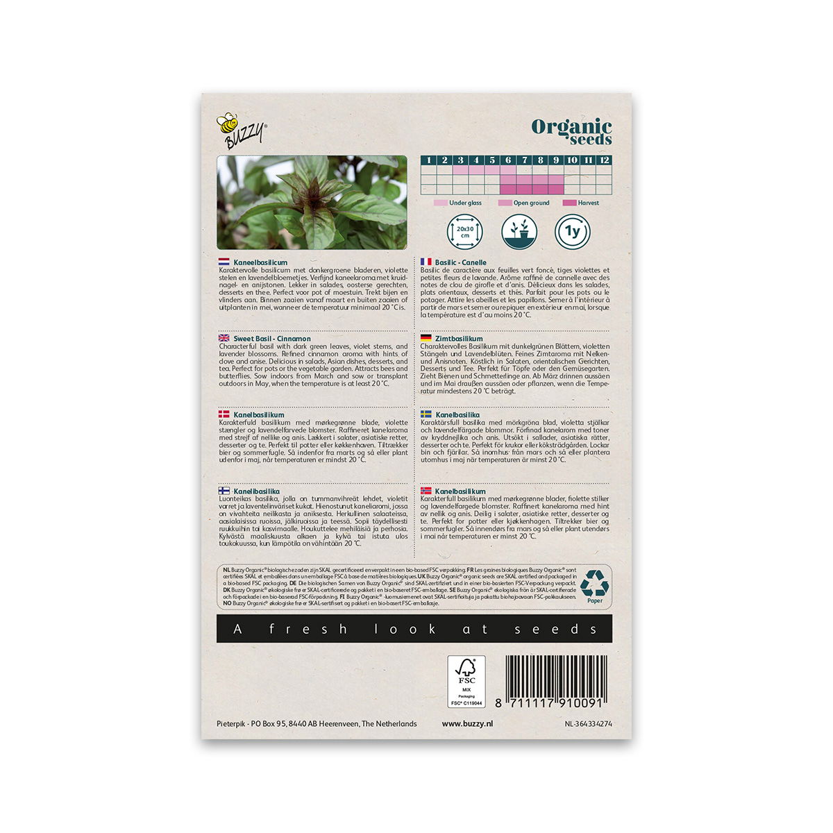 Kanelbasilikum er en aromatisk og dekorativ basilikum, der skiller sig ud med sine mørkegrønne blade, violette stængler og fine, lyslilla blomster. Smagen er noget helt særligt, en blød kanelnote med strejf af nellike og anis, som giver en spændende twist i køkkenet.
