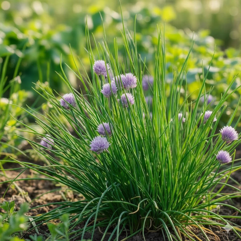Purløg er en skøn urt, som giver en god smag i mange retter. Purløg har tynde, grønne blade og fine lilla blomster, der giver lidt farve til din have.