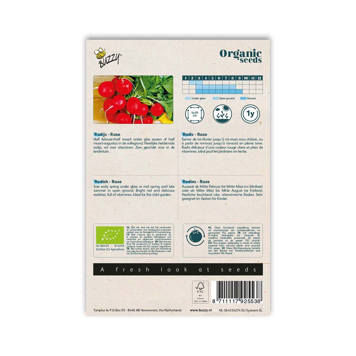 Økologiske skønne runde og røde radiser, der er hurtigtvoksende og nemme at dyrke. Du kan forvente at have lækre nye radiser indenfor ca. 3 uger.